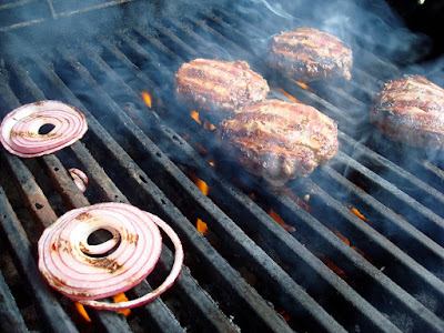 CAREFULLY brush the grill with oil or use non-stick grill spray. Grill the patties and onions at the same time. Grill the patties for 3-5 minutes per side and the onions for 1-2 minutes per side.